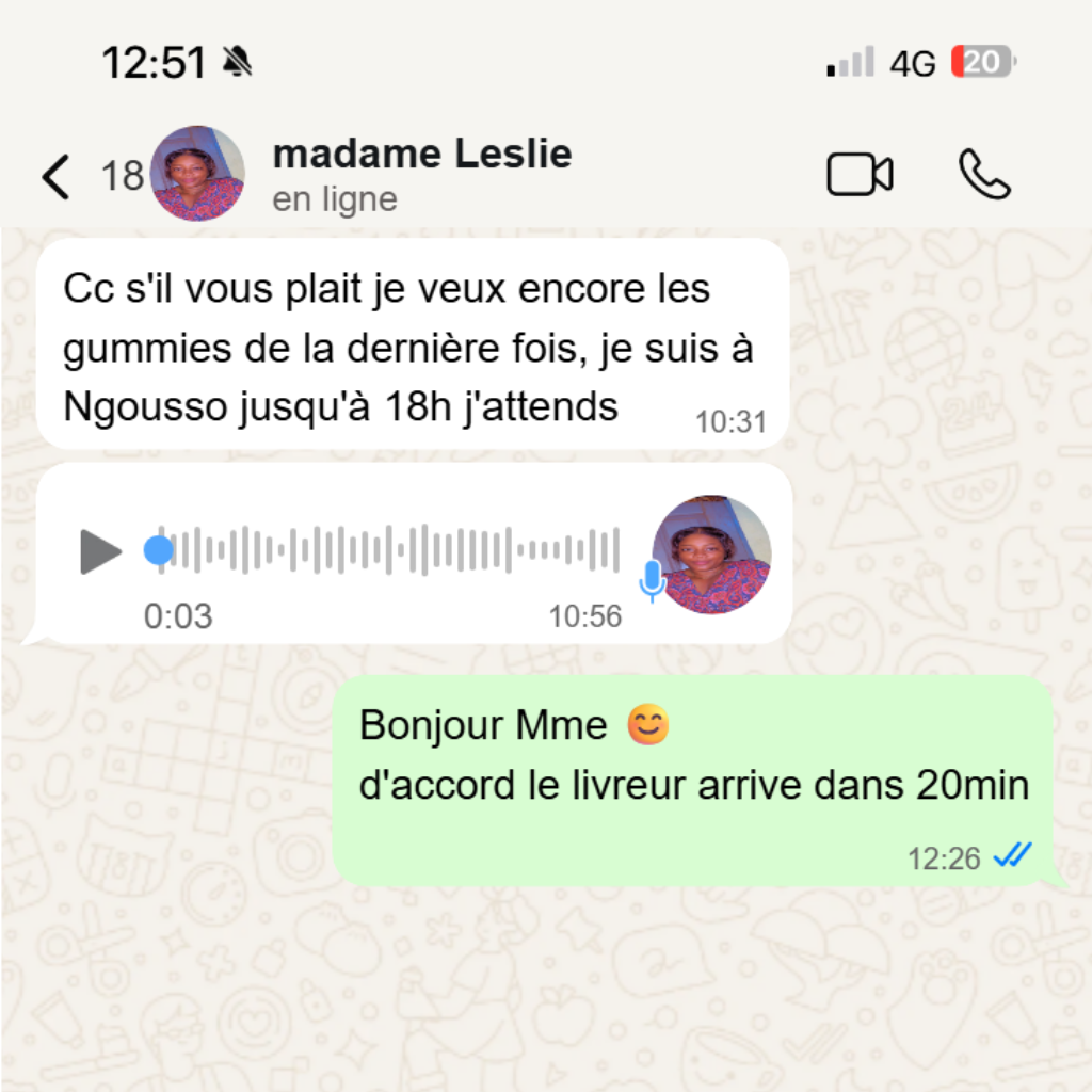 Nous livrons rapidement (en quelques heures) sur Yaoundé et Douala, sans frais de livraison.